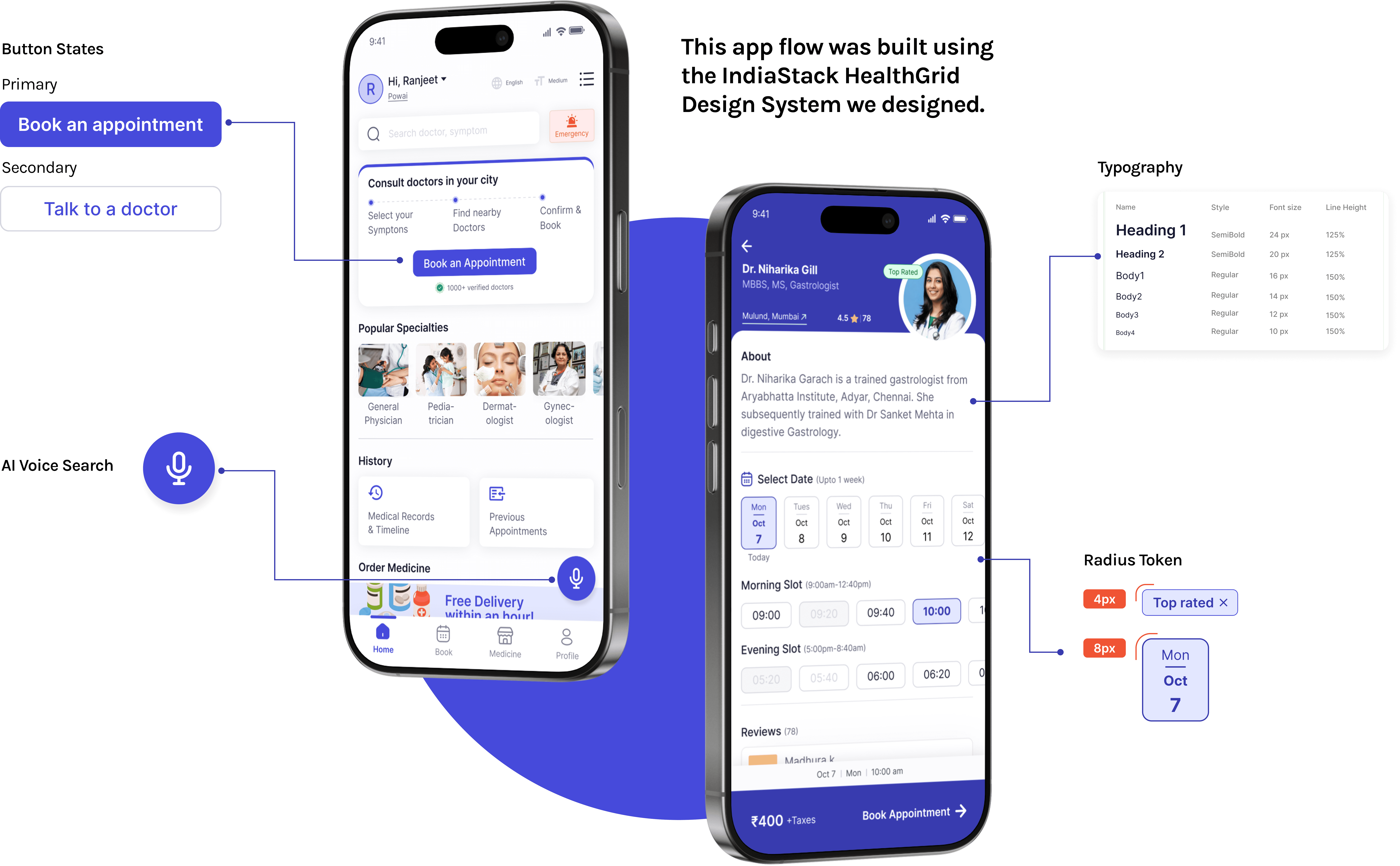 Introducing a comprehensive Design System for the India Stack Digital Health Ecosystem, crafted to empower developers and designers with reusable, accessible components and a unified visual language. It ensures consistency and inclusivity across platforms. Demonstrated through a user flow for booking a healthcare appointment designed for low literate users.
